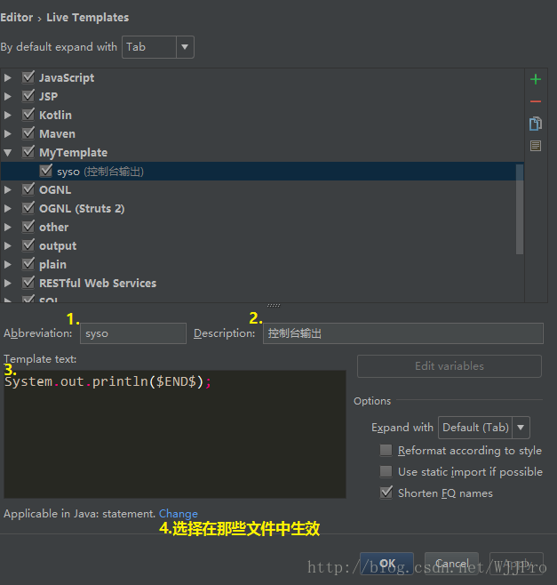 IntelliJ IDEA 中自定义模板代码的缩写